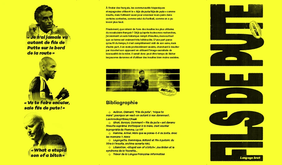 Language Brut présente des insultes qu'on utilise tous les jours sans réellement connaître leurs origines. C'est dans ce but que j'ai décidé de créer Langage Brut. ici avec la première édition et le "fils de p*ute", le lecteur apprendra comment l'insulte est née, de nombreux exemples de son utilisation mais aussi à quel point elle est misogyne.