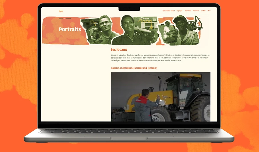 Le projet « Máquinas do dia a dia: museu virtual da engenhoca popular* » (Machines au jour le jour : musée virtuel du génie populaire) vise à tester un dispositif original de médiation scientifique pour documenter les stratégies d’adaptation des individus et leurs rapports aux appareils mécaniques face au développement de l’agrobusiness dans l’Ouest de Bahia, au #Brésil. Le principe était de créer une identité visuelle, la maquette du site et le coder à l'aide d'Osuny, un CMS comme Wordpress beaucoup plus léger, permettant à quiconque au Brésil d'accéder au site internet.